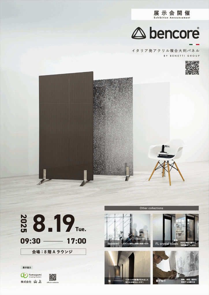 今回はbencore・FLクリスタルブラインド・iwasemiの商品を中心とした展示で、実物をご覧いただくことで、より商品の良さや魅力をお伝えいたしました。